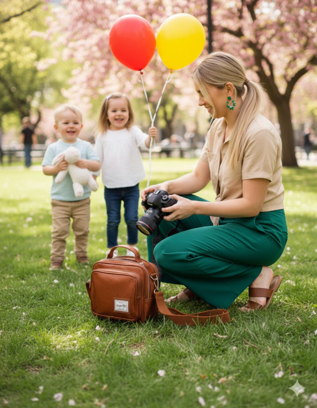 bolso porta cámara combinado en lona de algodon + eco cuero