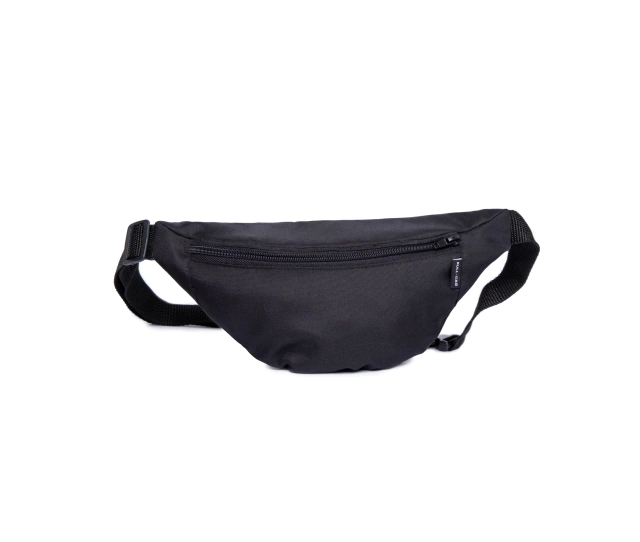 Riñonera liviana negra, con cierre de plastico al frente. COrrea ajustable con hebilla de plastico (tiptop). Lavable!