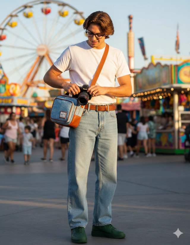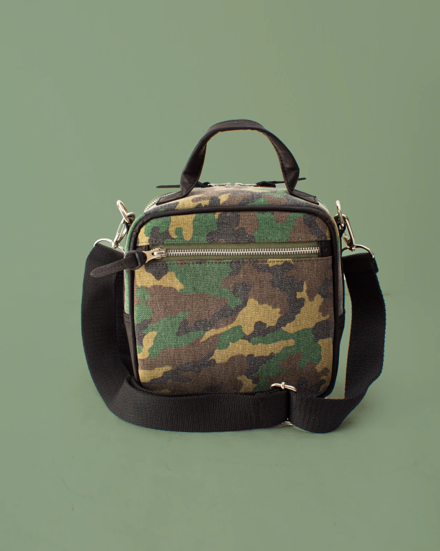 bolso porta cámara combinado en lona de algodon + eco cuero